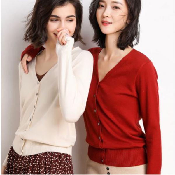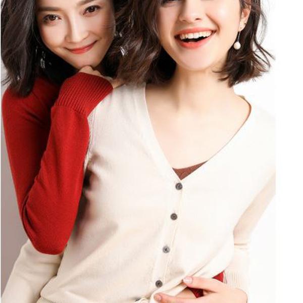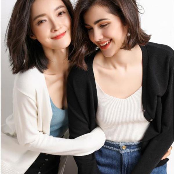 ニットカーディガン 無地 Vネック シンプル オフィス