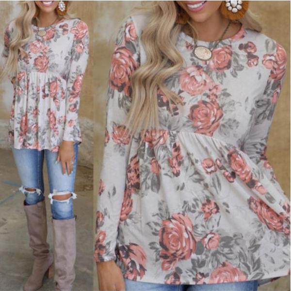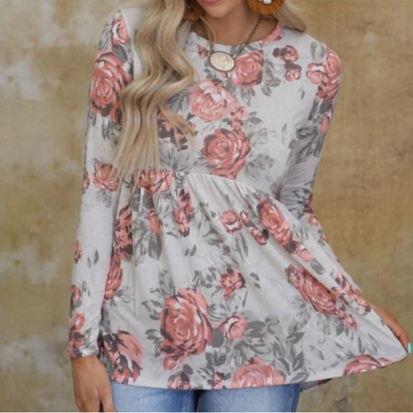 花柄ブラウス Tシャツ シャツ カットソー 長袖 レディース 30代 40代 50代