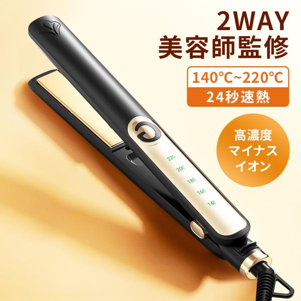ヘアアイロン 2WAY ストレート アイロン コテ ストレートアイロン カールアイロン 軽量 140℃〜220℃ 5段階調節 海外対応 カール アイロン 高濃度マイナスイオン