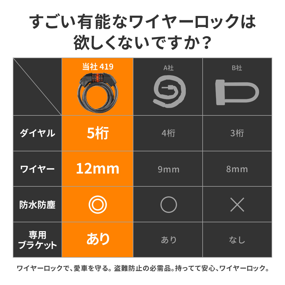 自転車 鍵 ワイヤーロック ダイヤルロック 5桁 盗難防止 ブラケット付き ダイヤル ロック ワイヤー チェーンロック 軽量 取付簡単 ダイヤル式 セキュリティ