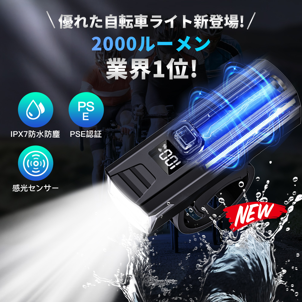 自転車 ライト 充電式 感光センサー 高輝度 小型 自動点灯 自転車ライト LED 子供 USB IPX7防水 電池残量一目瞭然 サイクリング 明るさ自動調整 防眩 防水 防塵