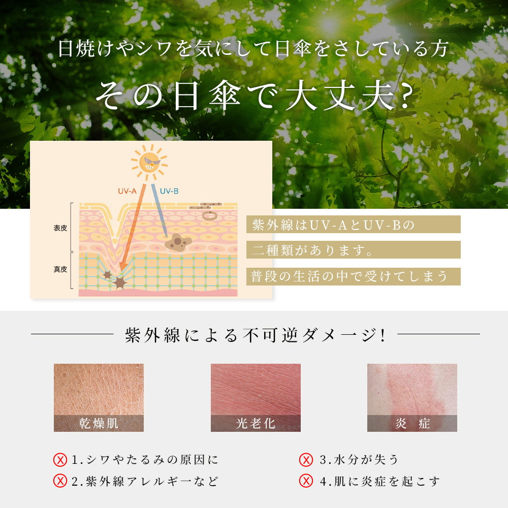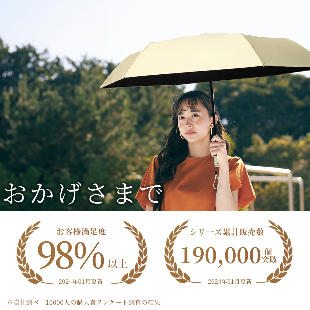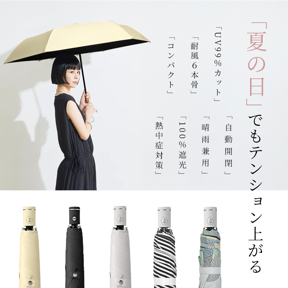 完全遮光傘は夏の日差し対策に欠かせないアイテムですが、雨の日にも活躍します。生地は特殊な撥水加工をして、軽く振るだけで、水滴が簡単に振り落とせます。急な小雨などにも重宝するため、1本持っておくと便利です。