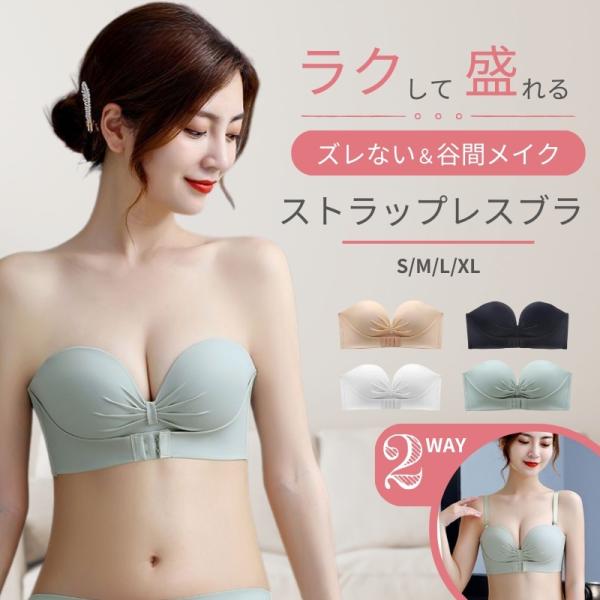 ストラップレス ブラ ストラップレスブラジャー ヌーブラ 盛れる ずれない 大きいサイズ 紐なし 2way チューブトップドレス 脇高 脇肉 補正 ノンワイヤー