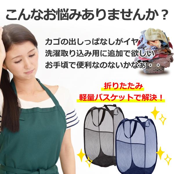 ランドリーバスケット 折りたたみ おしゃれ メッシュ スリム 大容量 洗濯カゴ 折り畳み コンパクト 畳める 軽い
