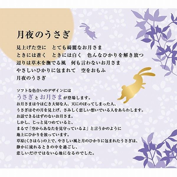 サックの後ろには「月夜のうさぎ」に込められたメッセージが綴られています。