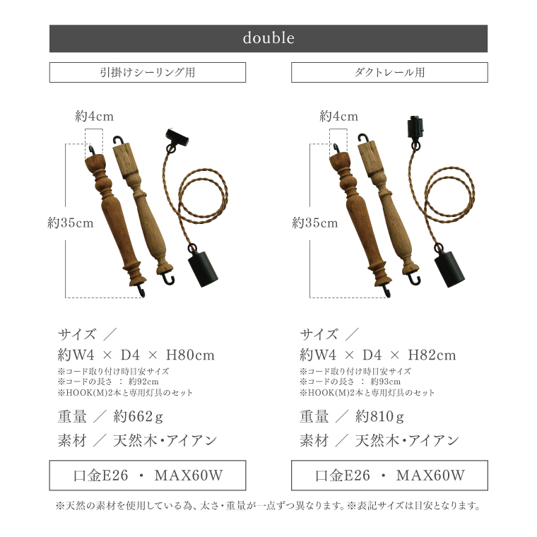 【VONA wooden spindle / PENDANT LAMP [double]】