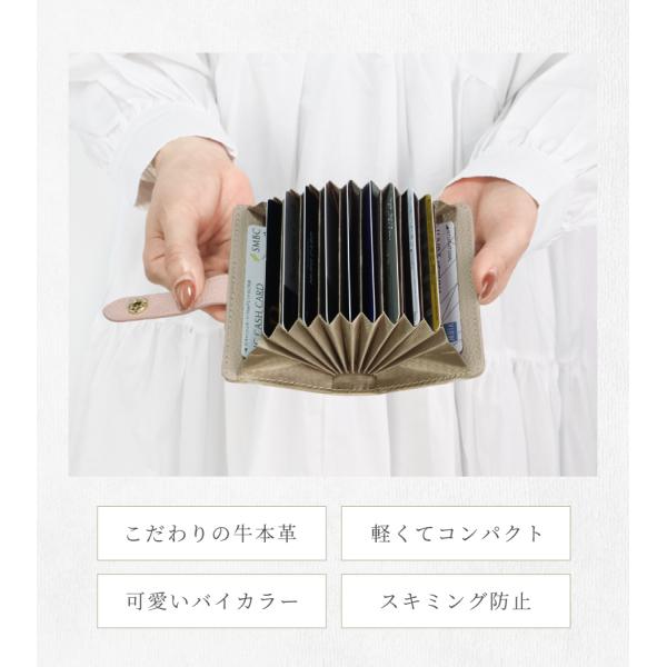 カードケース 大容量 レディース メンズ 薄型 ポイントカード クレジットカード バイカラー RFID スリム ベルト付き 防止 牛革 ミニ じゃばら 革 本革 おしゃれ