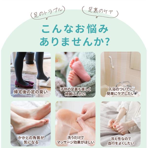 商品:フットブラシ 足洗い 足裏エステ ソフト やわらかい かかと バスグッズ 角質ケア 足の臭い 予防 マッサージ シリコン 温活 血流改善 吸盤付き フック付き