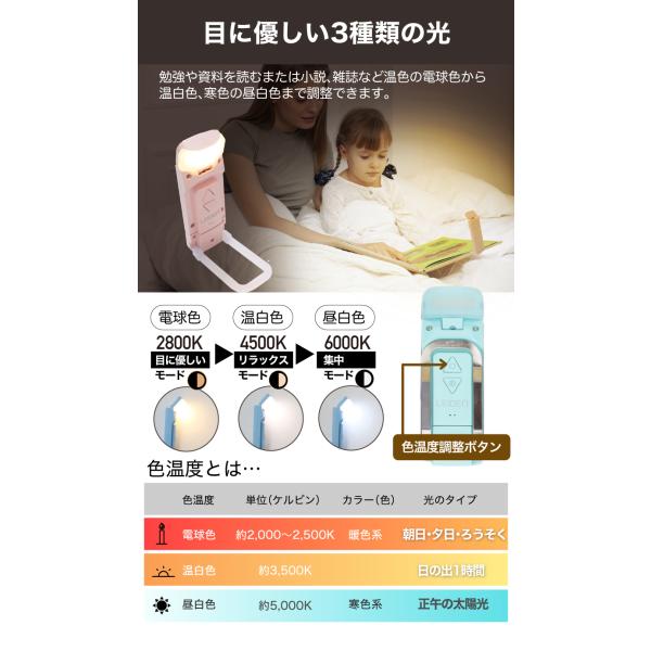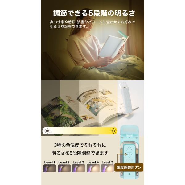 商品:クリップライト ブックライト 読書灯 LED 読書ライト ベッドの読書のため クリップ 角度調整 3段階調色 5段階調光 USB充電式 LEDリーディングライト