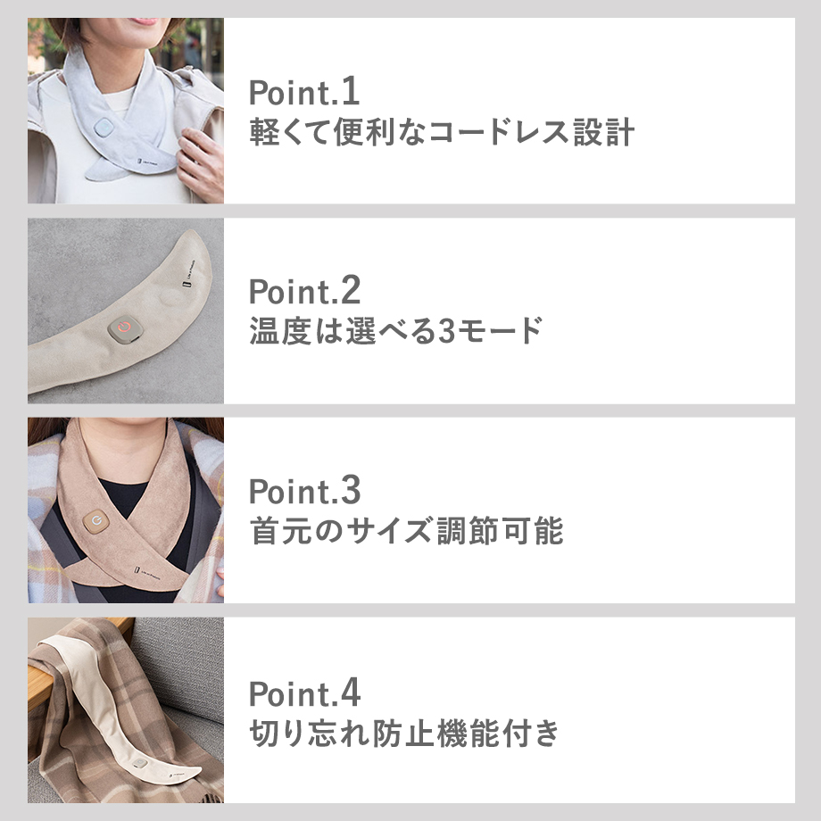 マフラーにインしてポカポカに!嬉しいコードレス&軽量設計