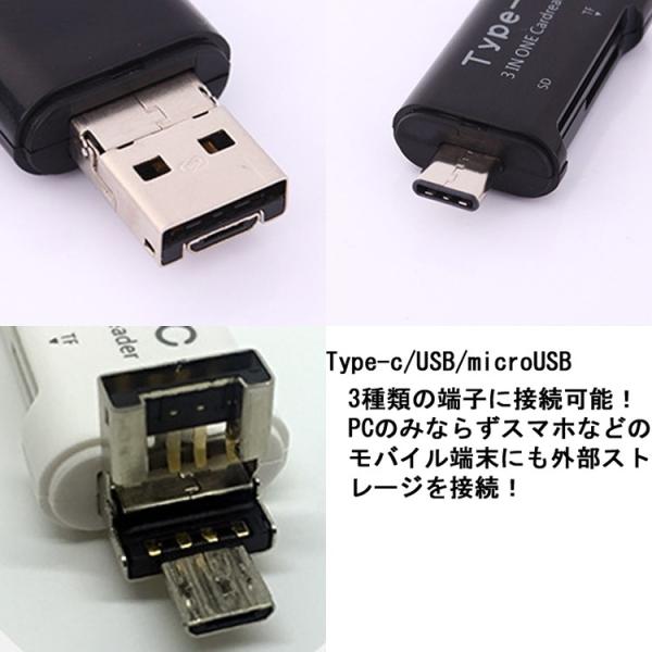 3IN1カードリーダー MICROUSB TYPE-C USB MICRO SDカード SDカード LP-TYPEC3IN1