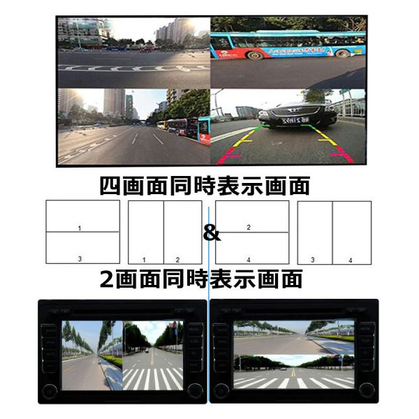 車載用ビデオ映像4分割器 モニター映像 4分割表示 正像 DC12V サイドカメラやバックカメラ、フロントカメラを一括表示 LP-CARS4SPT