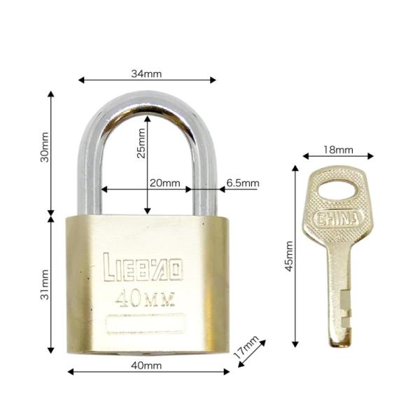 ステンレス南京錠(鍵3本付) 硬化鋼 汎用 鍵で施錠 スーツケース荷物 ロッカールーム 倉庫、小屋、ツールボックス 防犯に シャックル径約6.5mm LP-LOCK40MM