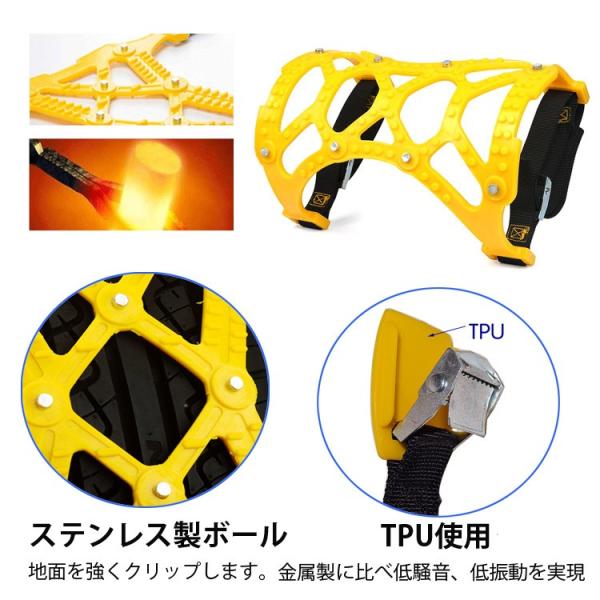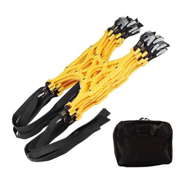 好評販売中、簡易スノーチェーンのアップグレード版。従来タイプは幅が狭く、タイヤ1本あたり5〜6本の装着が必要ですが、2018年新モデルのタイヤチェーンは幅約34cm、タイヤ1本あたり3枚装着で済み、さらに従来モデルよりもスリップ防止性能が優れております。