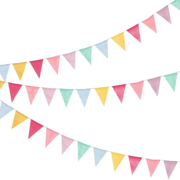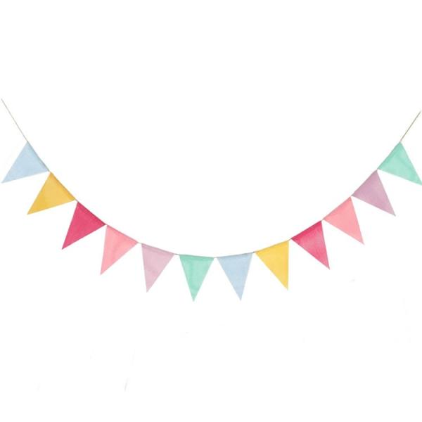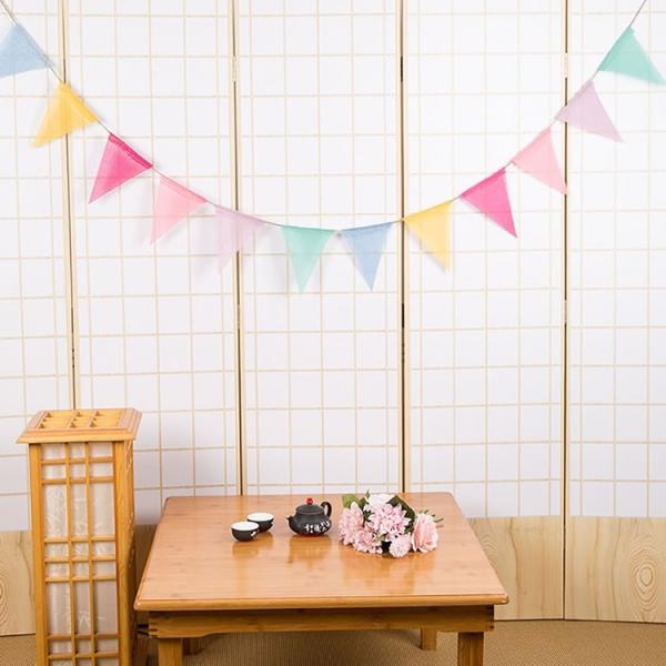 20枚のカラフルな三角旗を飾り付けることで、雰囲気を一層華やかに盛り上げます。