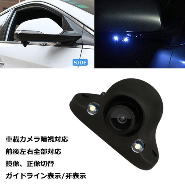 4分割車載モニター+小型バックカメラセット 7インチ 4分割表示 モニター + 角度調節 ガイドライン切替 正像/鏡像切替 粘着式 カメラ4個 LP-MN70BK1100SET4
