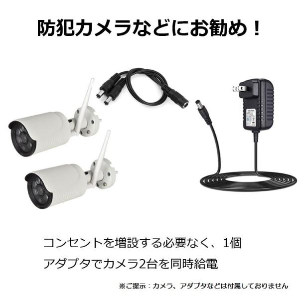 防犯カメラ用DC電源2分岐ケーブル 汎用ACアダプター用出力DCプラグ変換アダプター 外径5.5mm 内径2.1mm DCプラグ2.1mm用 1入力2出力 LP-DC12V1TO2