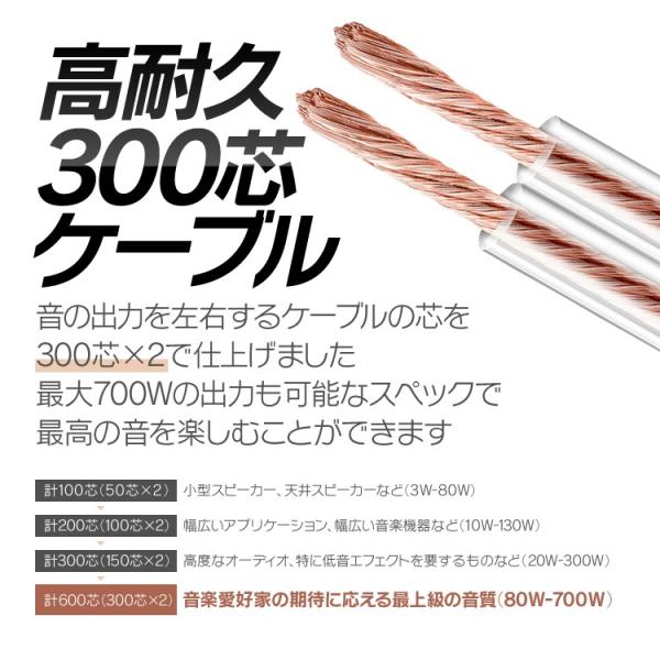 バナナプラグ付 スピーカーケーブル 金メッキ 1m 300芯×2 最大700W高出力 高純度無酸素銅芯使用 高品質伝送 信号損失を最小限に 低ノイズ LP-BANPC1M