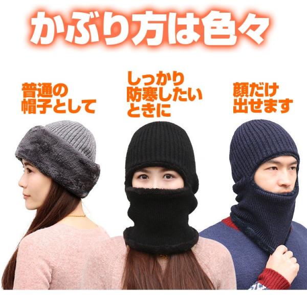 ニット帽 目出し帽 ニットキャップ フェイスマスク ネックウォーマー 裏ボア 帽子 防寒 ブラック ふわふわ 男女兼用 暖かい スキーつば付き選択可 LP-SKHT100