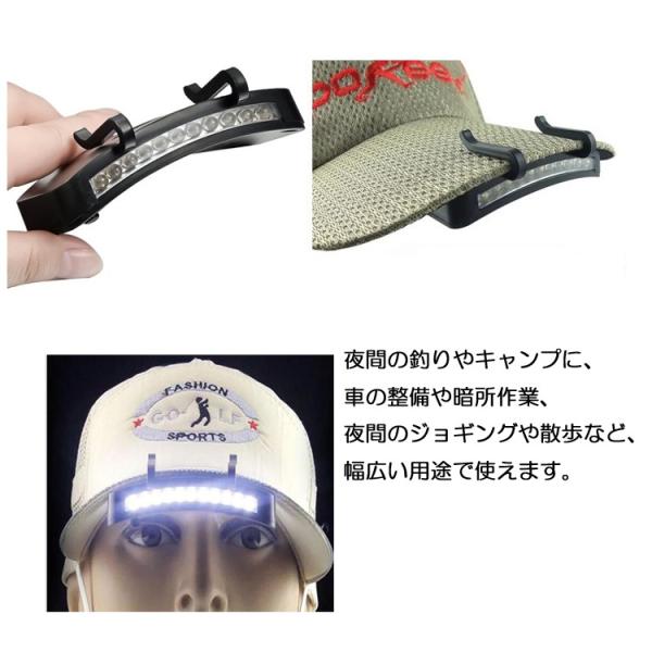 キャップ用ヘッドライト 帽子のつばに取り付け LED手軽に使える 夜間・暗所作業 防災 アウトドア キャンプ ハイキング 釣り 夜道 ハットライト LP-HCLED11