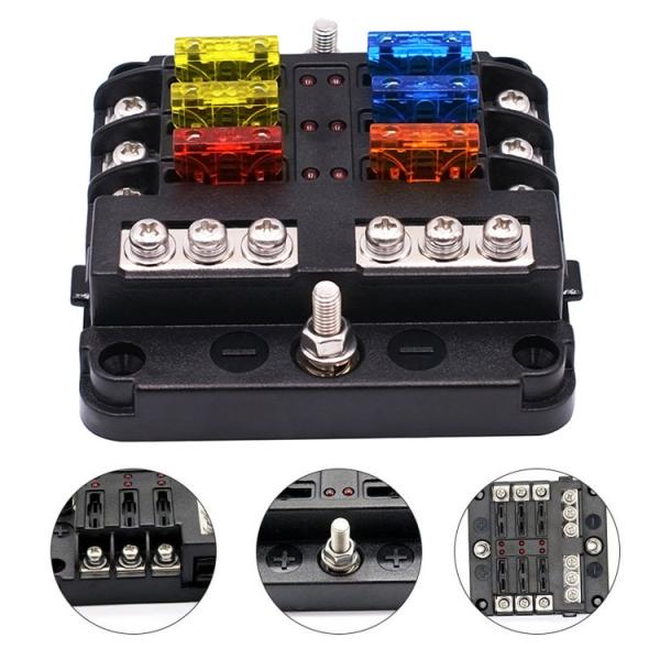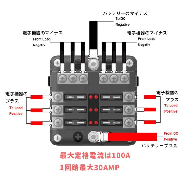 6WAY回路 ヒューズホルダー ヒューズボックス スクエア型 6分岐配線12V‐32V汎用 5A 10A 15A 20A 耐熱性 絶縁性 カバー付き 自動車 ボートマリン LP-CFB664A