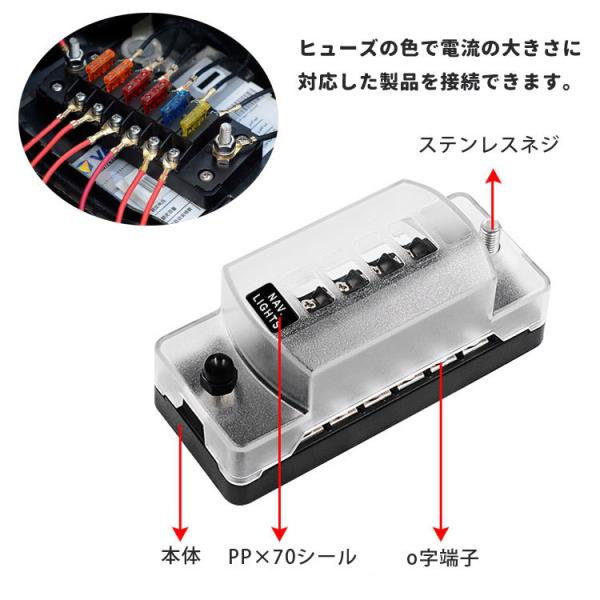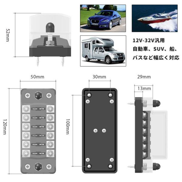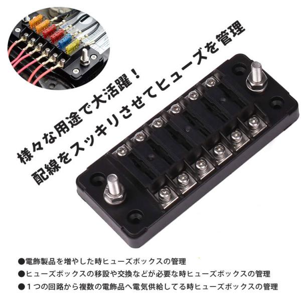 6WAY回路 平型ヒューズボックス 6分岐配線 12V‐32V汎用 5A 10A 15A 20A 耐熱性 絶縁性 カバー付き 移設 増設 電源 ACC電源 自動車 ボートマリン LP-WUUP978