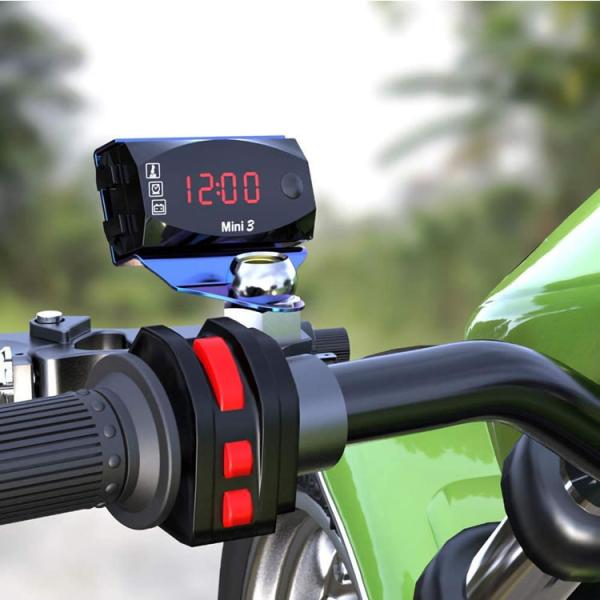 電圧計、温度計、時計の機能を備えた3in1の12Vバイク用デジタルメーターです。