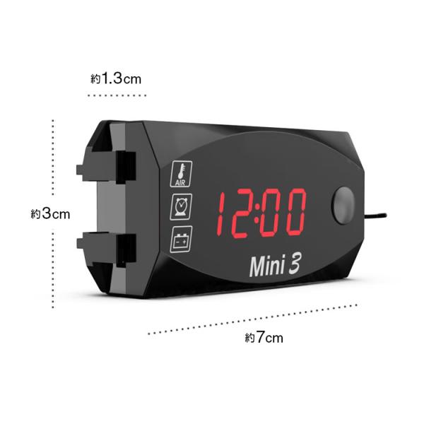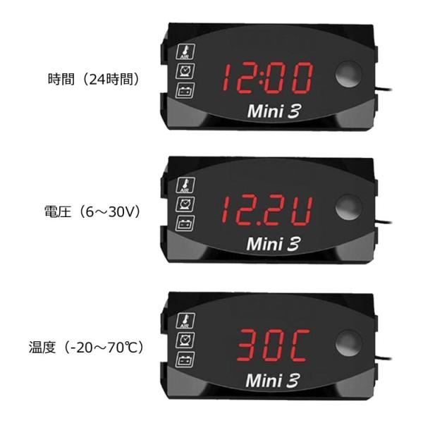 バイク用デジタルメーター 電圧計/温度計/時計 3in1 防水 防塵 悪天候も安心 LEDインジケーター赤 ボルトメーター 軽量 コンパクト 12V車専用 LP-SMC3IN1