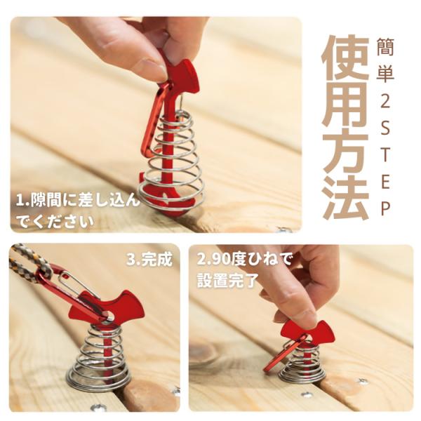 スプリングも付いてるので、ウッドデッキの隙間に落ちない仕組みで御座います。