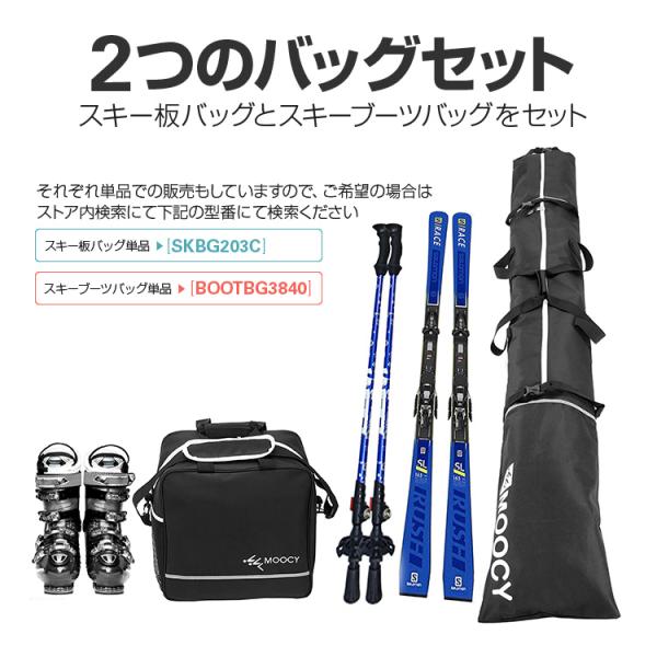 スキー収納バッグセット スキー板+スキーシューズバッグ 203cmスキー板ケース シューズケース スノボも対応 スノーボード収納セット 撥水素材 LP-SKBAGSET2