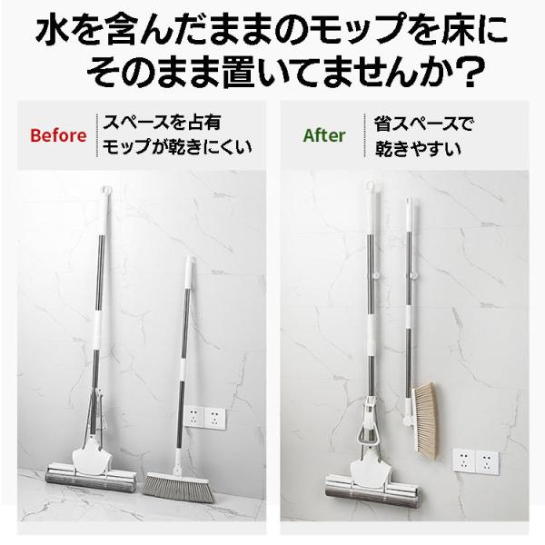 モップホルダー 2個セット 強力粘着フック 傷つけない 壁掛けフック 耐荷重4kg 取付簡単 モップ ほうき 清掃道具 傘などの収納に 2個セット LP-SJIA8199S2