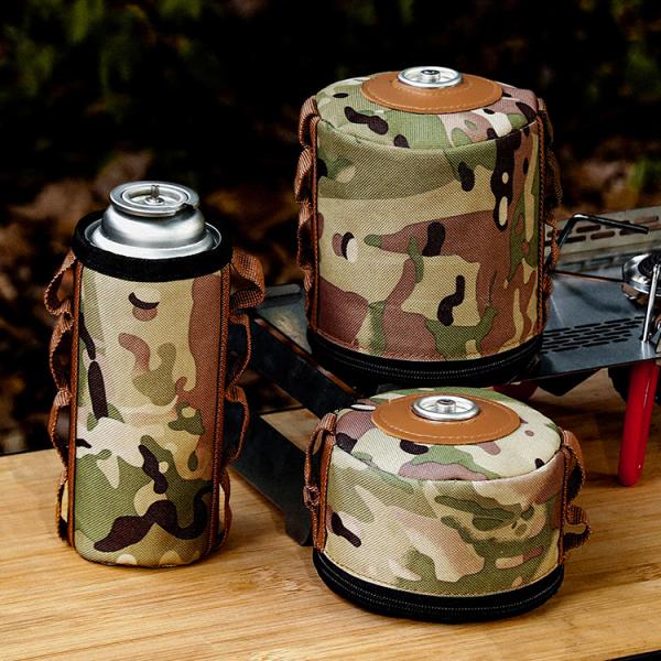 アウトドア用OD缶ケース 迷彩柄 230G用 450G用選択可 900Dオックスフォード製 ガス缶カバー 軽量 高耐久ナイロン素材 SBS製ジッパー 出し入れ楽々 LP-SDKMC230