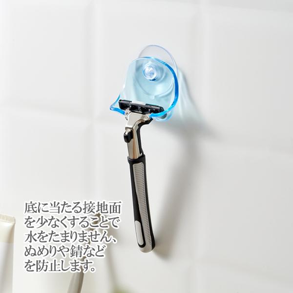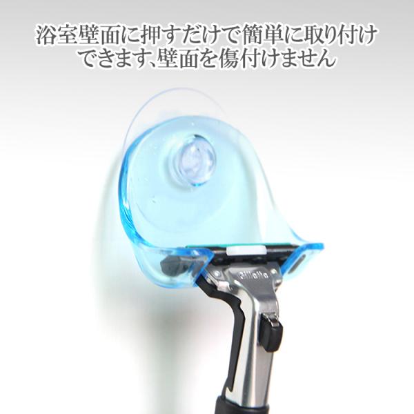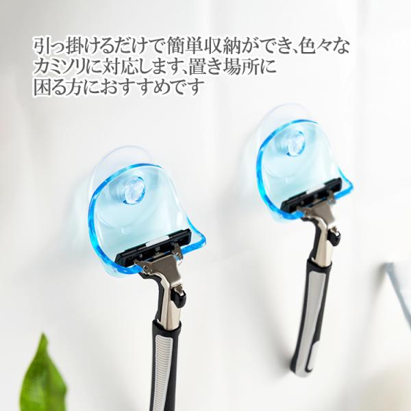 洗面所やお風呂場の鏡や壁面に、カミソリを引っ掛けて収納できます。