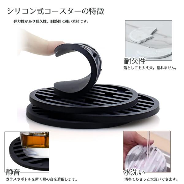 滑りにくく、安定しやすいシリコン製のコースター5枚セットです。
