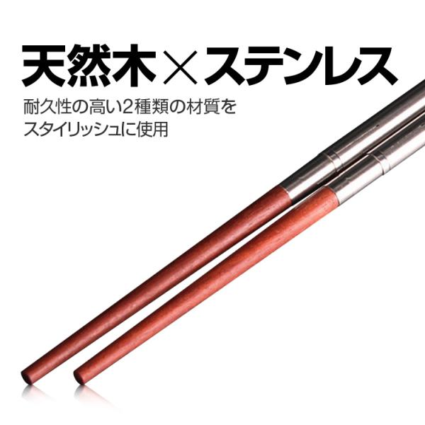 天然木とステンレス素材で仕上げた丈夫で耐久性の高い組み立て式箸です。