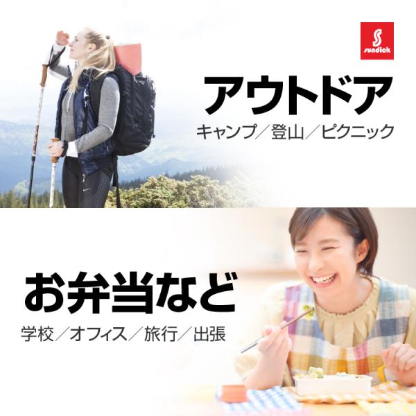 カラビナ付きの専用携帯ケースを付属し、ソロキャンプやファミリーキャンプ、登山や釣りなどのアウトドアをはじめ、BBQやお祭り、行事ごとなどのレクリエーション、また学校やオフィスでのお弁当、旅行や出張などでのMY箸としてなど幅広い用途で活躍します。
