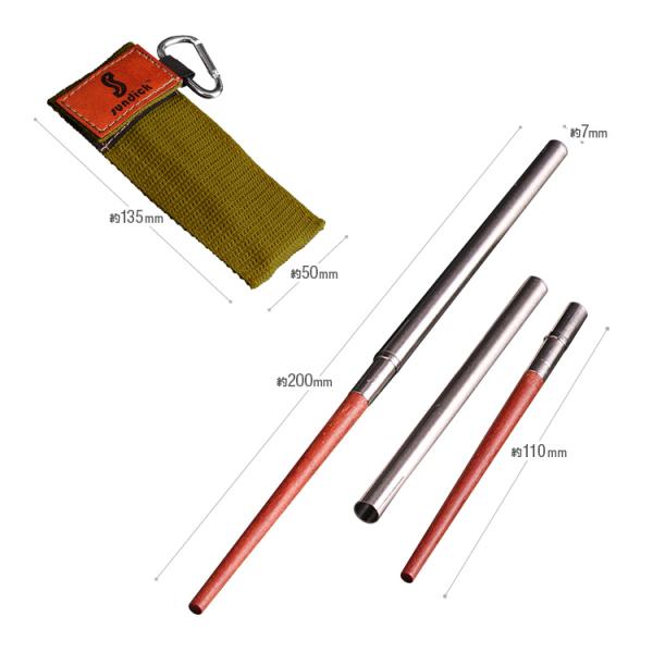 SUNDICK 組み立て式箸 天然木+ステンレス カラビナ付き携帯ケース 軽量コンパクトで携帯に便利 マイ箸 キャンプ/登山/アウトドア/弁当/旅行 LP-SDKSTH207