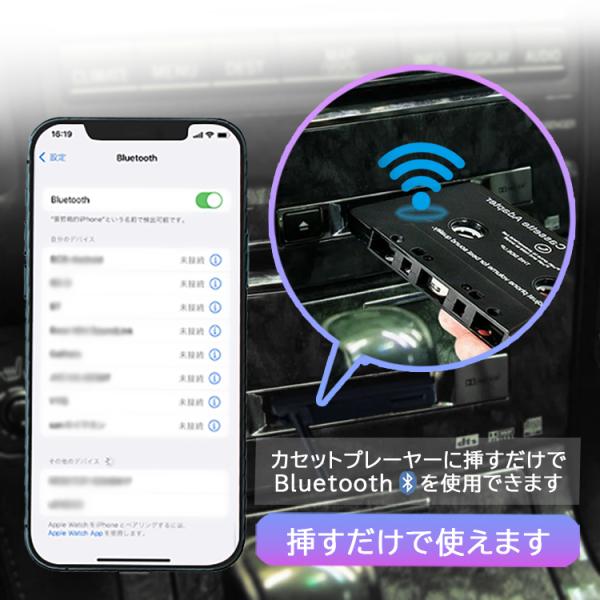 インストール不要、挿すだけで使えるBluetoothカセットアダプタです。