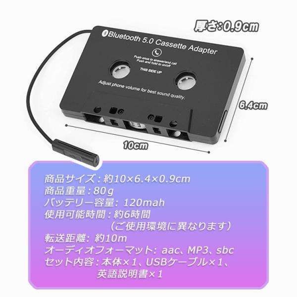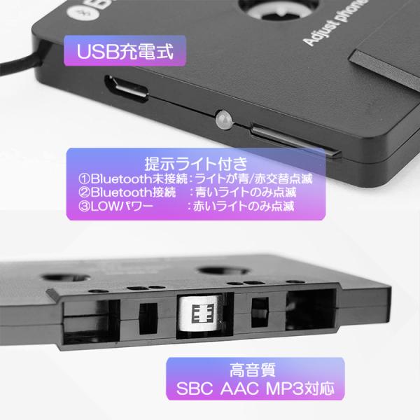 Bluetoothカセットアダプタ Bluetooth5.0 ミニマイク内蔵 ワイヤレスオーディオレシーバー 高音質 中古車に 使用簡単 USB充電式 ハンズフリー LP-BCAA100