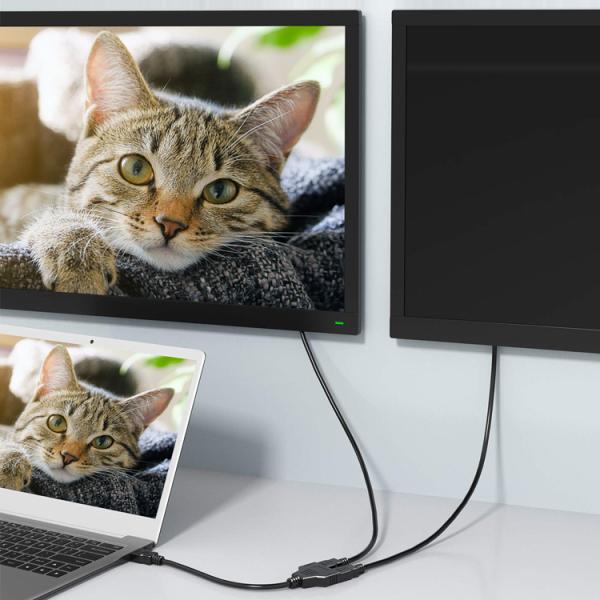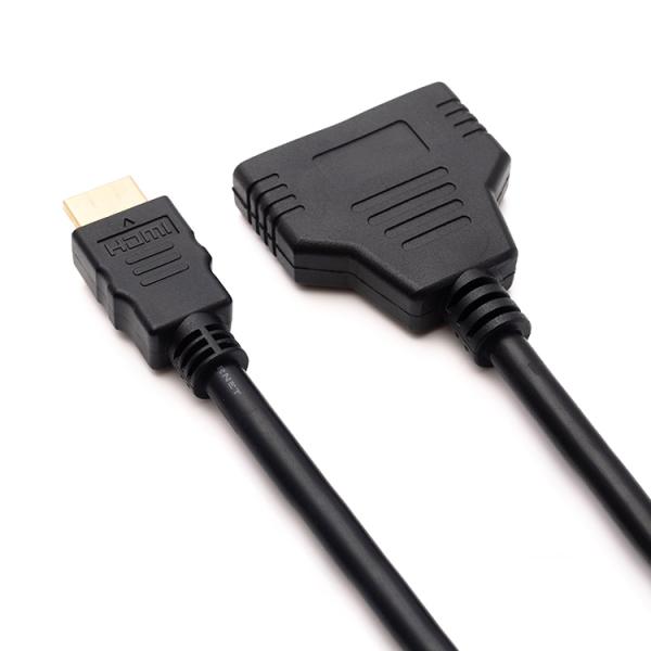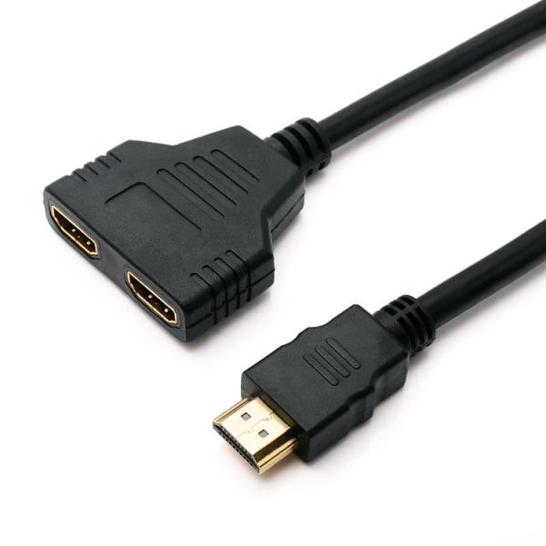ビデオやPCなどのHDMI出力機器と、最大で2台のモニター類を同時接続できる、フルHD対応のHDMI分岐ケーブルです。