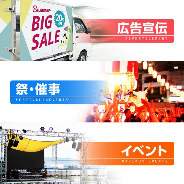 USB/MicroSDカードの読み込みに対応し、広告宣伝、選挙活動、政治活動、お祭り・催事、各種イベントなど幅広いシーンで活躍します。