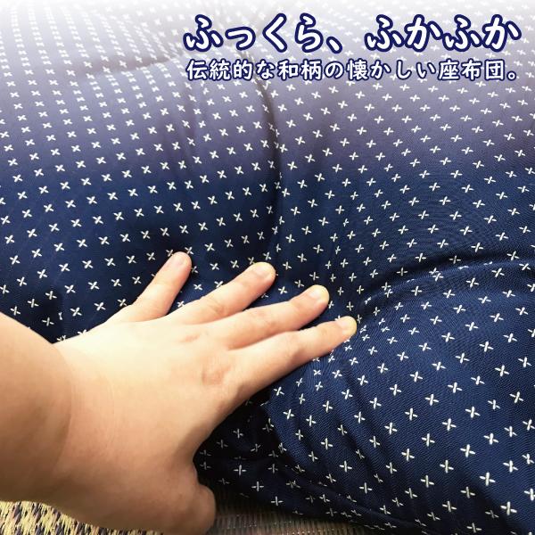 座布団 2個セット 銘仙判 撥水 はっ水 防汚 約55×59cm (同色2枚組) 盆 来客 和室 洋室 和柄 刺し子 刺繍 ふっくら 2枚組セット ZA1015 爆買