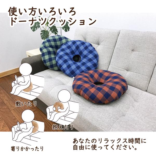 クッション 座布団 円 円座 円座クッション 綿100% 疲れにくい ドーナツ おしゃれ 介護用品 床ずれ防止 介護 ケア用品 直径40 チェック