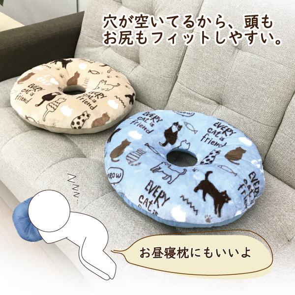 クッション 円座 インテリア 腰痛 産後 痔 ドーナツ フランネル 座布団 椅子 車 デザイン ねこ neko ネコ 40cm C2755