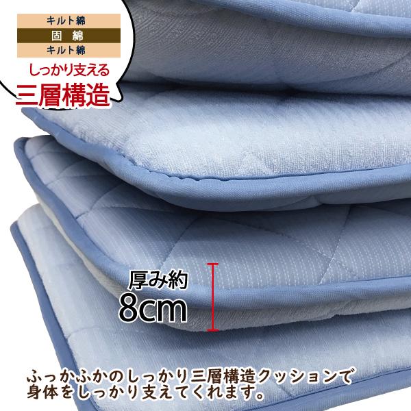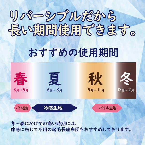 ひんやり生地&さらさら生地、両面使えるボリューム三層長座布団です。