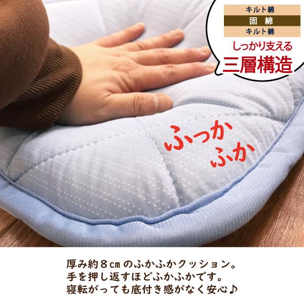 長座布団 65×180 厚み8cm パイル ひんやり 両面 三層構造 固綿入り 昼寝 ごろ寝 ボリューム