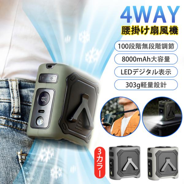 腰掛け扇風機 強力 携帯扇風機 首掛け/腰掛け/卓上 5段階風量調節 静音設計 8000mAh大容量 熱中症対策 PSE認証済 アウトドア/屋外作業/オフィス用 爆買
