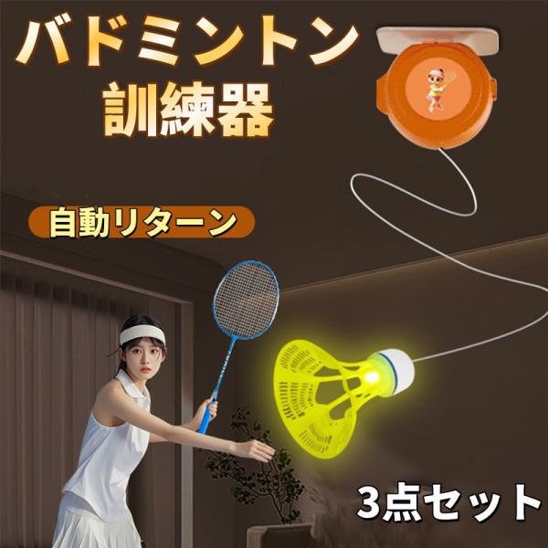ファミリーバドミントン 一人練習器 自動回? 子供運動不足解消 室内遊びバドミントントレーニング 発光玉 高さ調整 壁貼り付け 簡単設置爆買