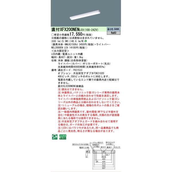 [法人限定] XFX200NEN LE9 パナソニック 天井直付型 20形 一体型LEDベースライト iスタイル [ XFX200NENLE9 ]