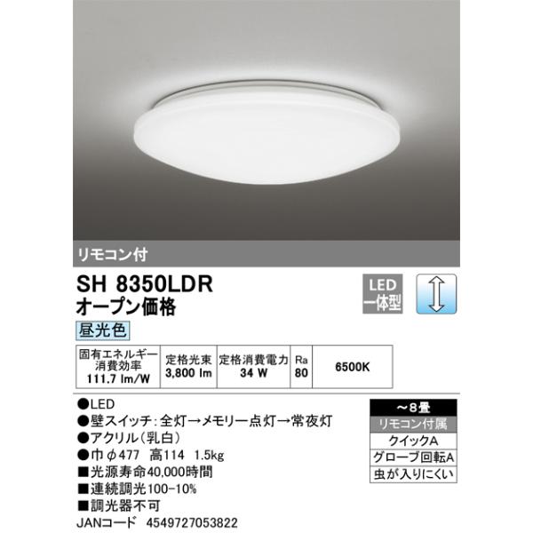 ○[即納在庫有り] SH8350LDR オーデリック シーリングライト 昼光色 調光 8畳